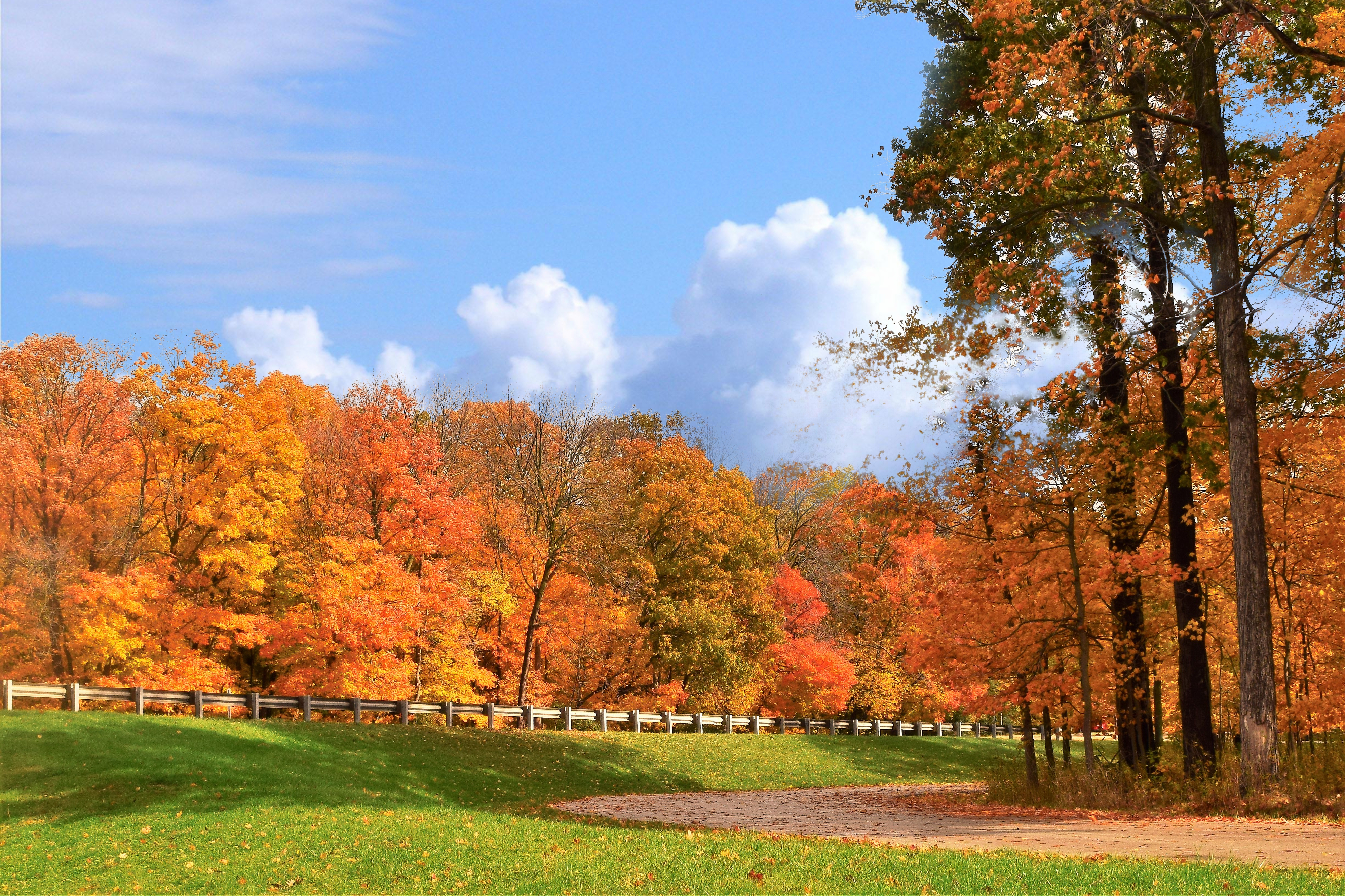 - 평탄한 산책로와 넓은 잔디밭
