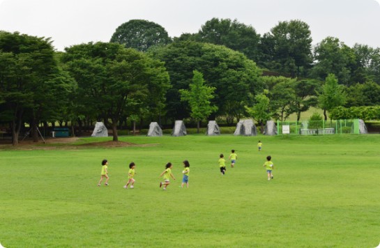 - 탁 트인 넓은 잔디밭으로, 아이들이 자유롭게 달리고 뛰놀 수 있음