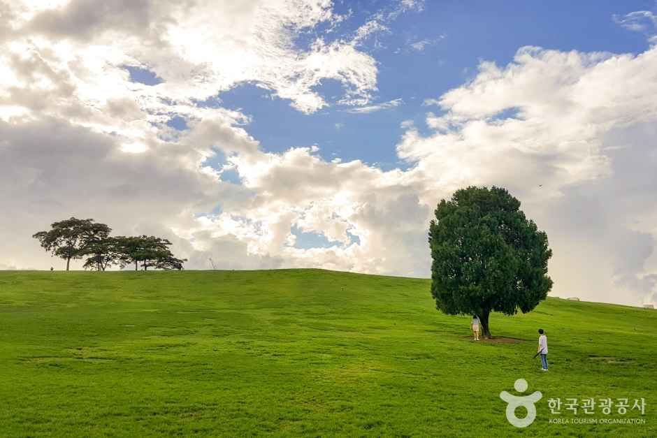 Walk along Wiryeseong-gil, a tree-lined path filled with beautiful autumn colors. There are wide open lawns, bike rental services, and even playgrounds — perfect for kids.