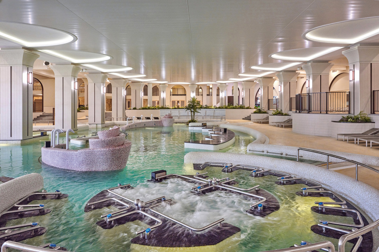 - 천연 온천수 기반 실내·야외 바데풀