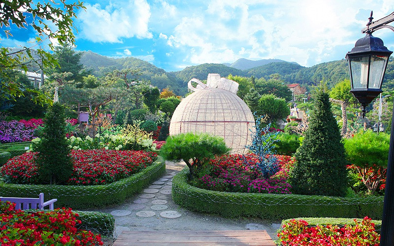 허브아일랜드는 다양한 허브 체험과 산타마을, 스카이 허브팜 등 볼거리가 풍부한 테마파크입니다. 특히 6월에는 라벤더와 핑크뮬리가 아름답게 피어납니다.